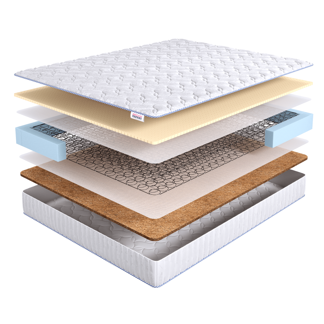 Классический зависимый пружинный блок гарантирует эффективную поддержку тела, а различная жесткость сторон позволяет выбрать наиболее удобное положение для сна. С одной стороны матраса используется натуральный латекс для обеспечения средней жесткости и повышенного комфорта, а с другой - латексированная кокосовая койра для жесткости выше среднего. Такое сочетание наполнителей делает матрас идеальным для тех, кто ищет оптимальное соотношение мягкости и упругости.