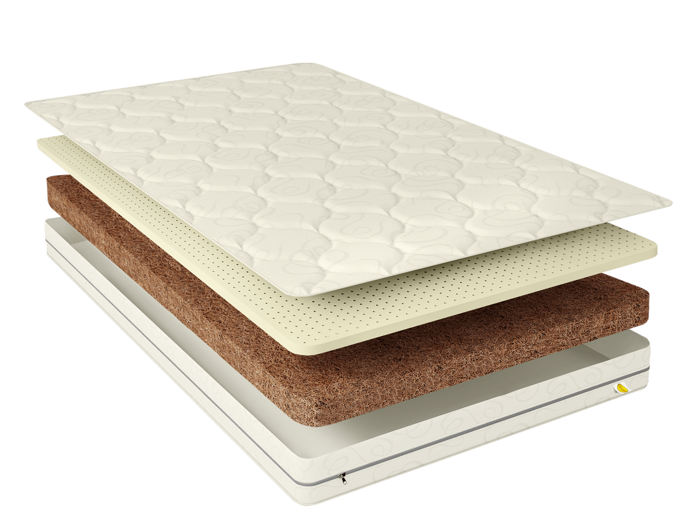 Матрас Baby Natural с разными сторонами жесткости. Одна сторона жесткая, другая умеренно жесткая. Общая высота матраса 8 см. Матрас является беспружинным. С одной стороны добавлен слой латексированной кокосовой койры толщиной 6 см, придающий дополнительную жесткость и долговечность матрасу. С другой стороны добавлен слой натурального латекса высотой 2см, усиливающий анатомические свойства, комфорт и срок службы матраса. Съемный чехол матраса, выполнен из хлопкового жаккарда, простеганного на экологически чистом материале Hollcon.