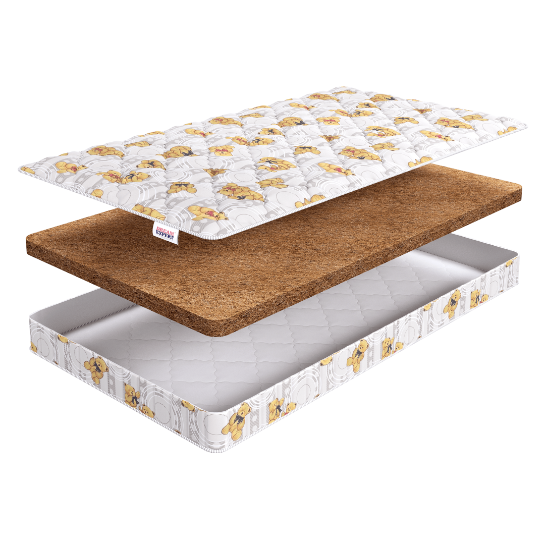 Наборные слои латексированной кокосовой койры гарантируют высокую жесткость матраса и способствуют правильному формированию осанки ребенка.
