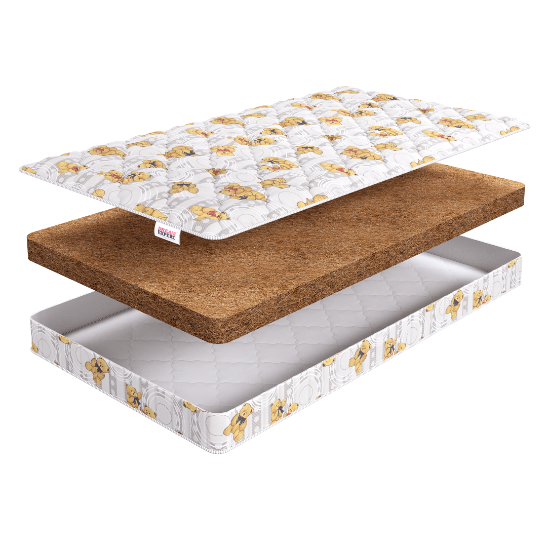 Наборные слои латексированной кокосовой койры обеспечивают высокую жесткость матраса, необходимую для правильного формирования осанки ребенка.