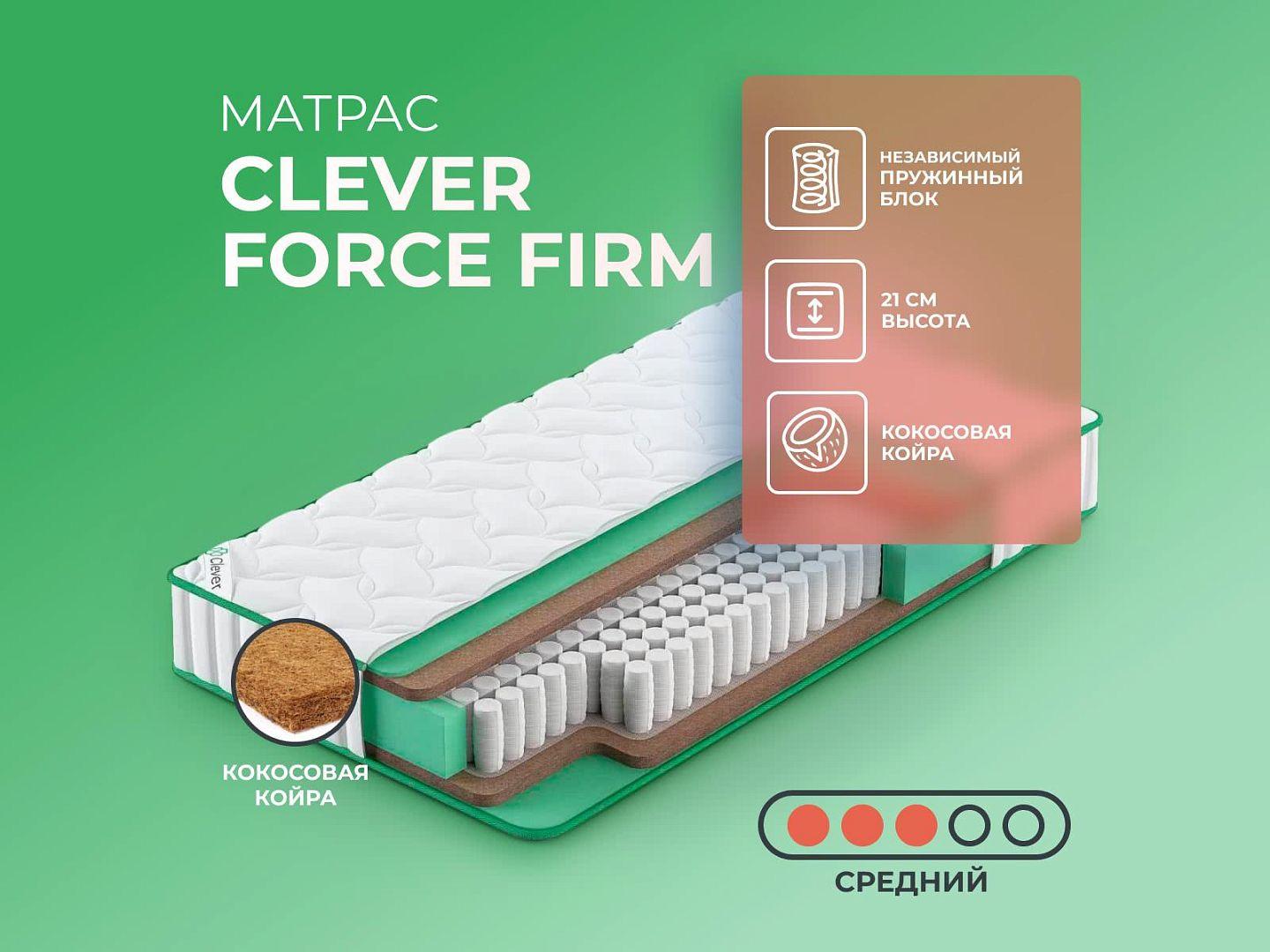 Фабрика Clever получила заслуженную репутацию, благодаря применению новых технологий и безупречному соблюдению стандартов качества. Clever Force Firm — образец продукта с лучшими характеристиками и доступной ценой, матрас создан из дышащих тканей, с эффектом вентиляции.