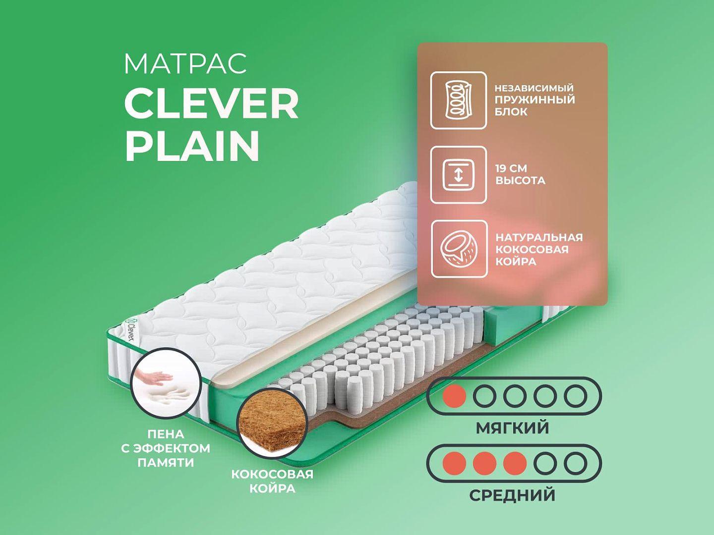 Фабрика Clever получила заслуженную репутацию, благодаря применению новых технологий и безупречному соблюдению стандартов качества. Clever Plain — образец продукта с лучшими характеристиками и доступной ценой, матрас создан из дышащих тканей, с эффектом вентиляции.