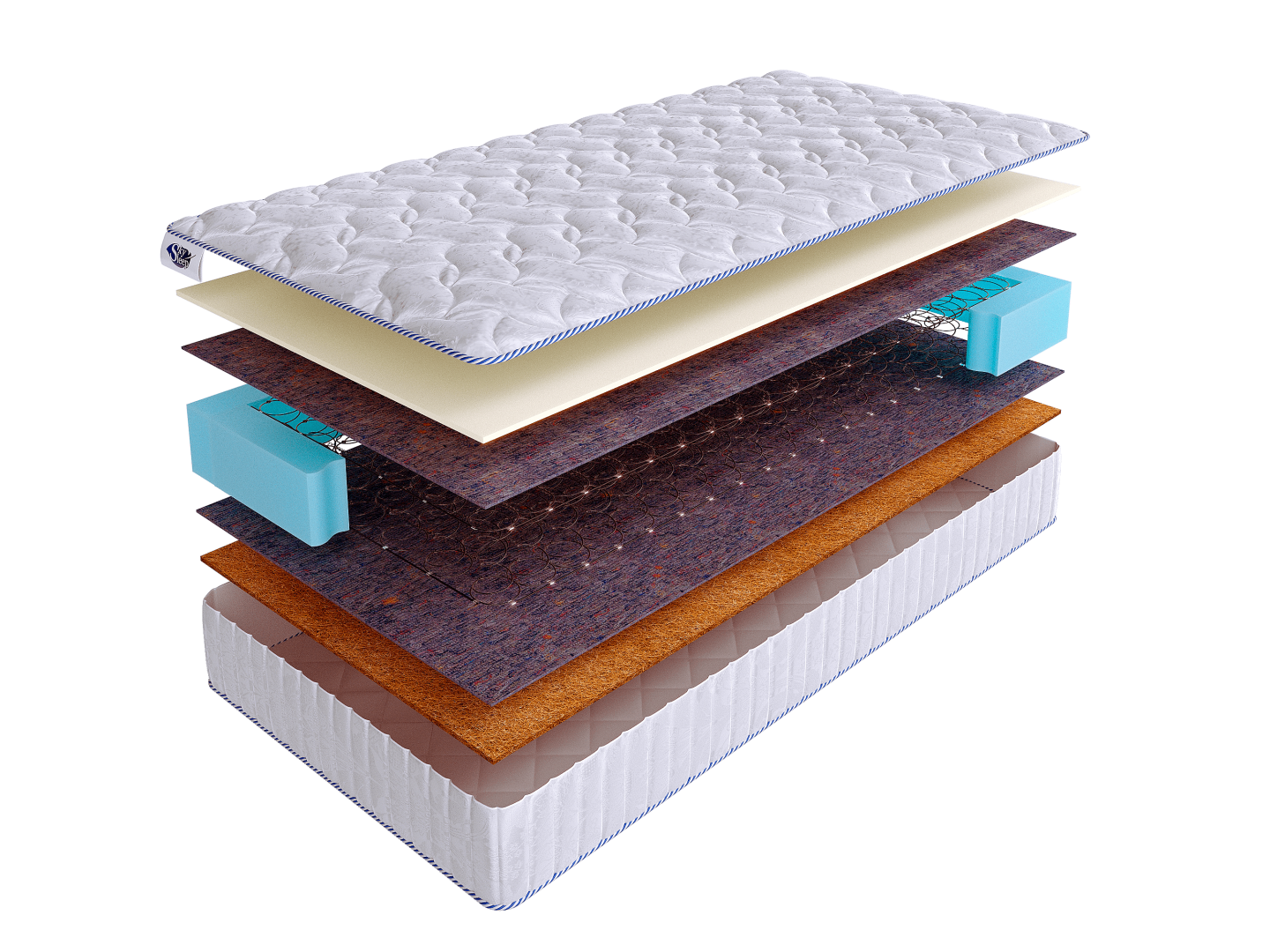В основе матраса лежит пружинный блок «Боннель» отличающийся своей прочностью и долговечностью.