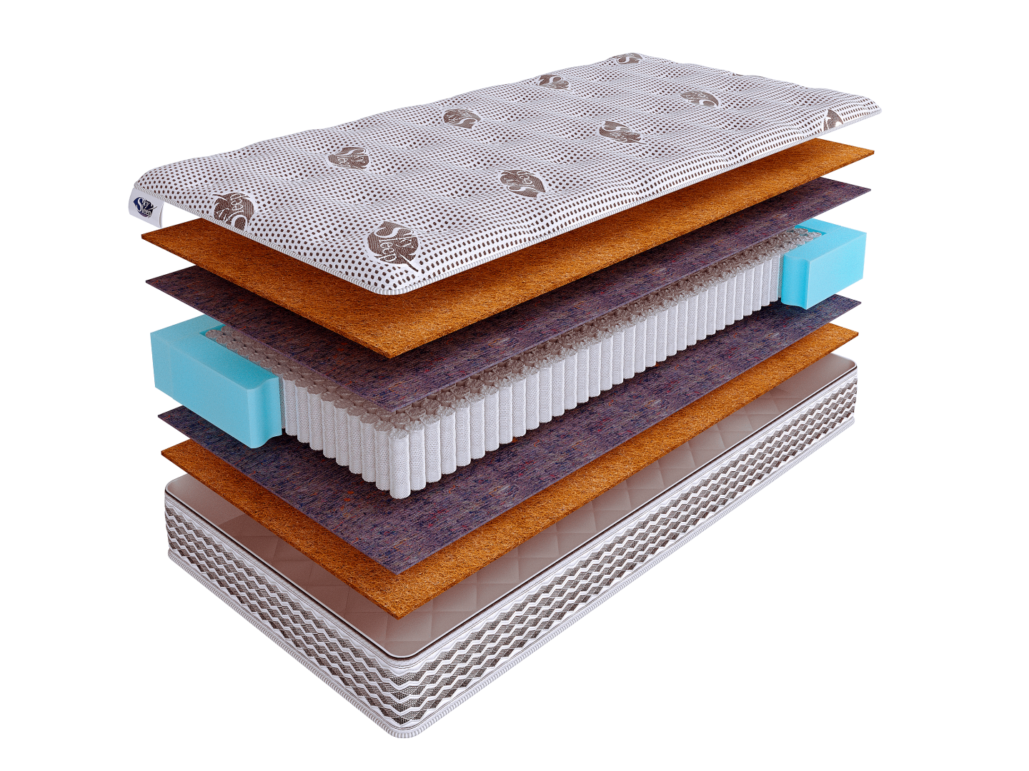 Это материал, обладающий такими качествами, как прочность, упругость и отличная воздухопроницаемость. Слои кокоса толщиной 1 см расположены по обеим сторонам модели и обеспечивают надежную ортопедическую поддержку для всего тела.