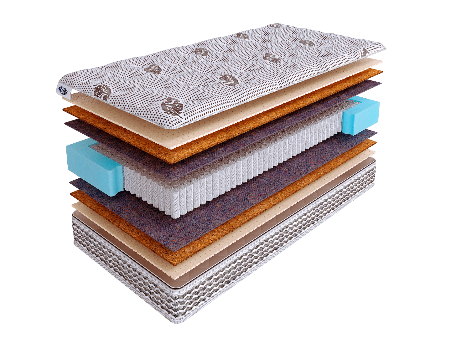 Латекс – мягкий, высокоэластичный материал, обладающий высокими адаптационными свойствами. Он максимально точно подстраивается под изгибы тела спящего человека, создавая оптимальный уровень анатомического эффекта. А кокосовая койра — природный материал, обладающий такими качествами, как прочность, упругость и отличная воздухопроницаемость. В сочетании друг с другом эти наполнители создают удобной спальное место с высоким уровнем комфорта.