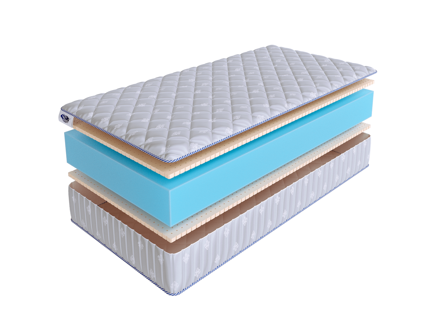 Основу матраса составляет блок высокоэластичной пены Orto Foam высотой 18 см. Ее главными преимуществами являются отличная адаптивность и высокий уровень воздухопроницаемости. Благодаря своей эластичности пена идеально подстраивается под форму тела спящего человека, создавая анатомическую поддержку позвоночника. Пористая структура позволяет ей свободно пропускать воздух, за счет чего в матрасе не скапливается лишняя влага и не развиваются вредные микроорганизмы.