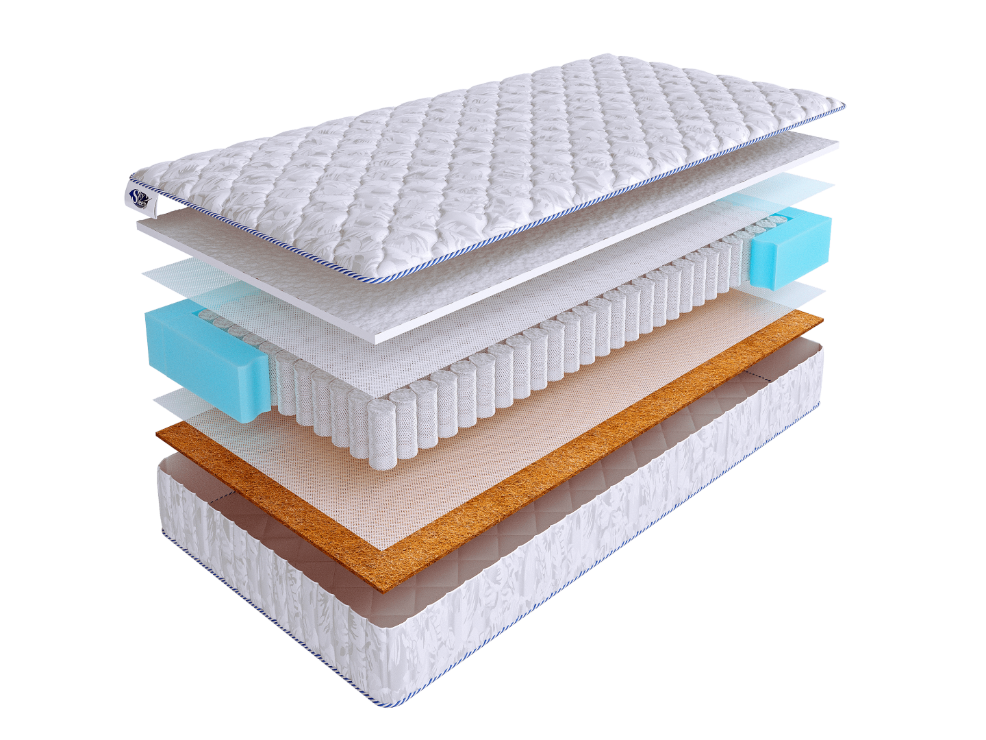 Матрас START FIRM S500 умеренно-высокой жесткости выполнен их экологичных материалов: струттофайбера и латексированной кокосовой койры. Струттофайбер – современный, гипоаллергенный материал, обладающий высокой прочностью и отличной воздухопроницаемостью.  Плотный и упругий прессованный материал хорошо распределяет нагрузку на пружинный блок благодаря вертикальному расположению волокон. Сторона матраса с кокосовой койрой подойдет для тех, кто любит спать на жесткой поверхности или имеет проблемы с осанкой. Кокосовая койра обладает бактерицидными свойствами, что способствует поддержанию благоприятного микроклимата спального места.