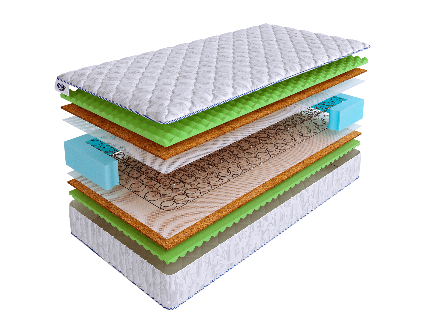 В основе матраса лежит зависимый пружинный блок «Боннель». До сих пор эти блоки считаются классикой матрасного производства, так как обладают высоким уровнем прочности и надежности. Такой блок может выдерживать большие нагрузки и пользуется спросом среди людей с большим весом.