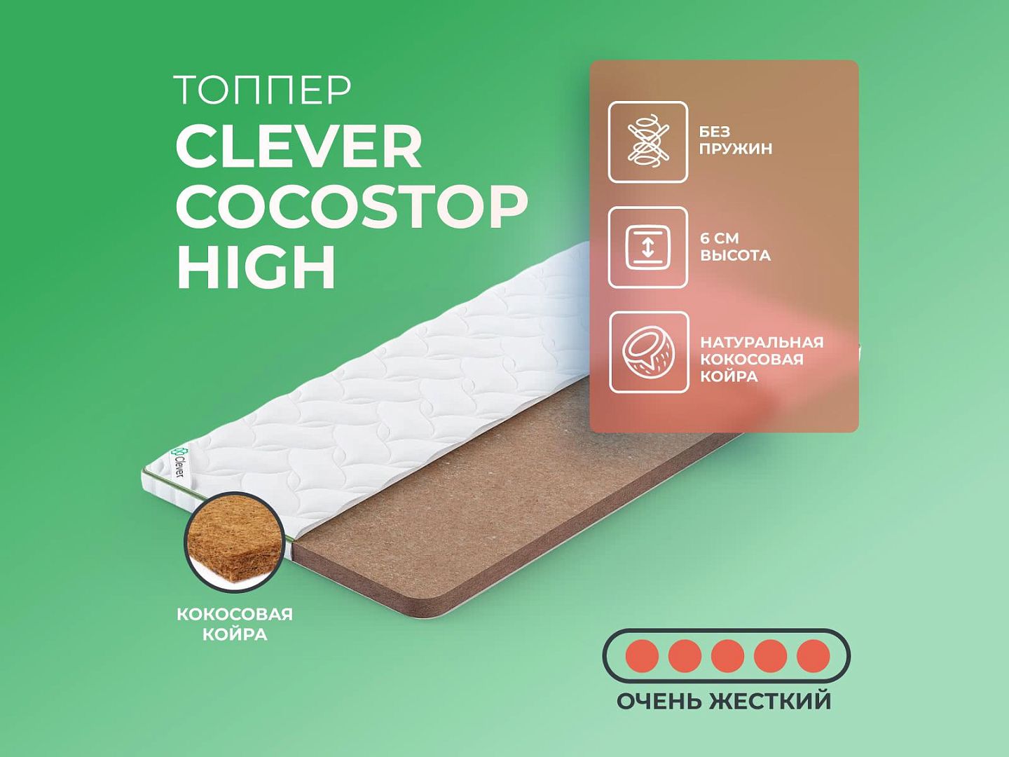 Фабрика Clever получила заслуженную репутацию, благодаря применению новых технологий и безупречному соблюдению стандартов качества. Топпер Clever CocosTop High — образец продукта с лучшими характеристиками и доступной ценой, матрас создан из дышащих тканей, с эффектом вентиляции.